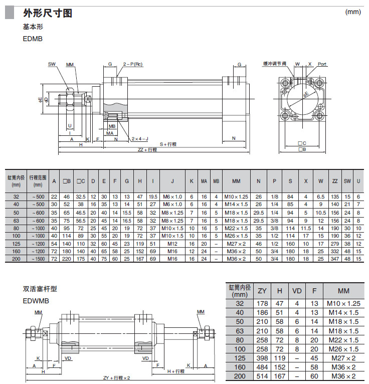 EDMF-200-25,EDMF-200-50,EDMF-200-75,EDMF-200-100 EDMF-200-125,EDMF-200-150,標(biāo)準(zhǔn)型氣缸