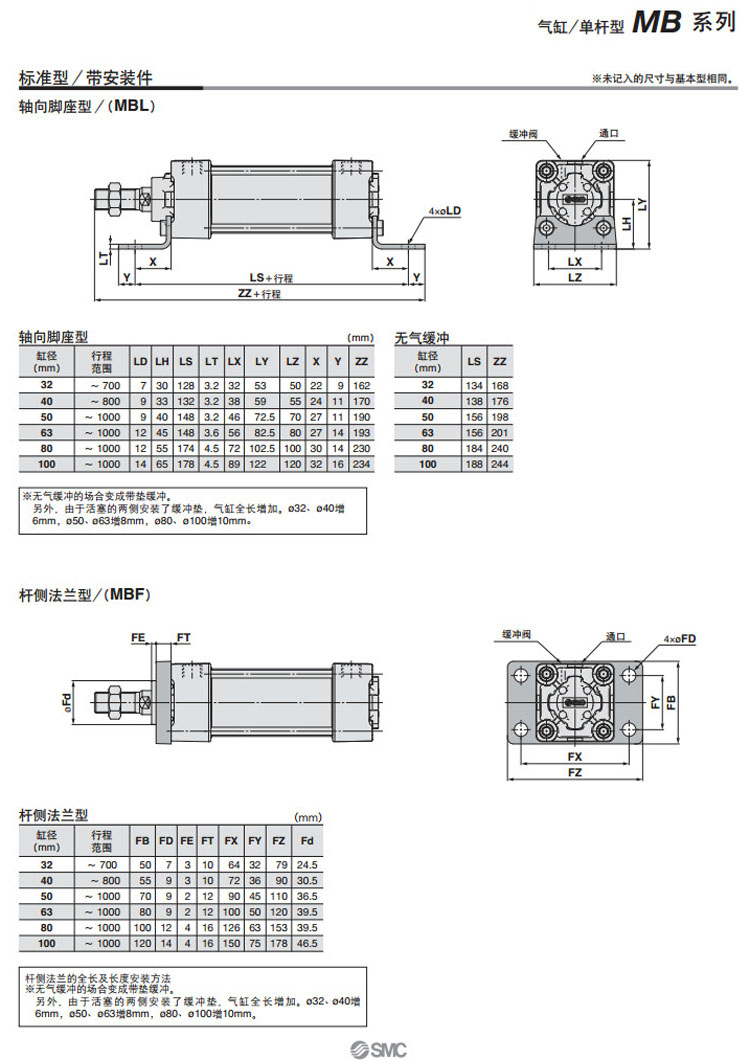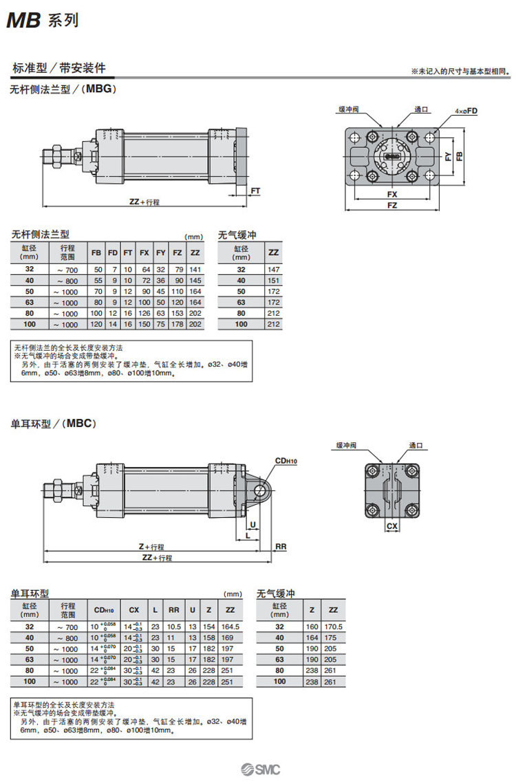 MBT100-150Z,MBT100-175Z,MBT100-200Z,MBT100-250Z,MBT100-300Z,MBT100-350Z,MBT100-400Z,MBT100-450Z,SMC單桿型氣缸