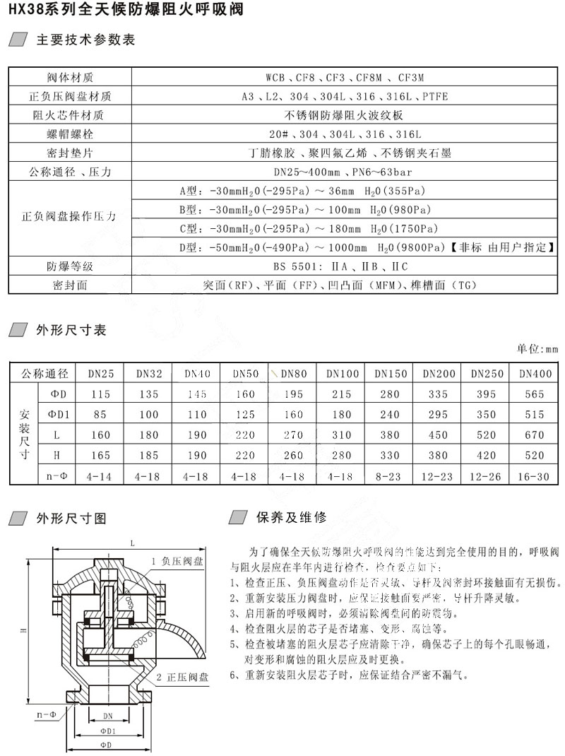 HX38-6C-DN25,HX38-6C-DN150,HX38-63C-DN40,HX38-63C-DN250,防爆阻火呼吸閥