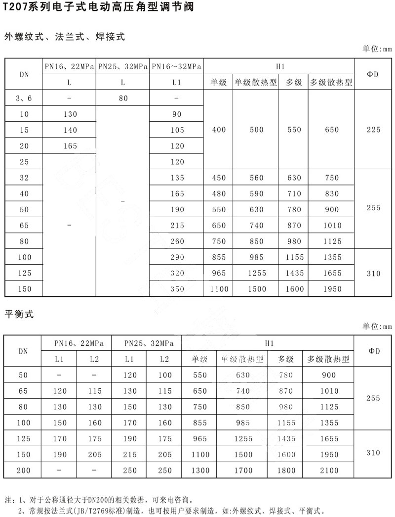 T207-160B,T207-220B,T207-250B,T207-320B-DN50,電子式電動高壓角型調(diào)節(jié)閥 |
