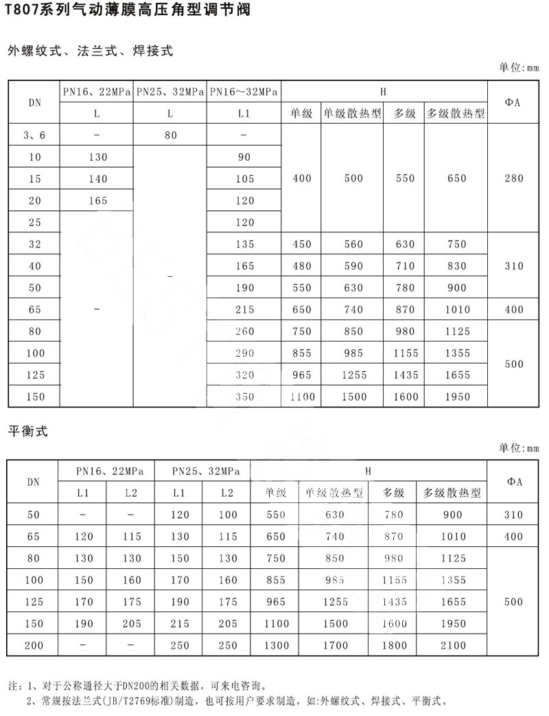 T807-16C,T807-16B,T807-22C,T807-22B,T807-25C,T807-32B,氣動薄膜高壓角型調(diào)節(jié)閥 |