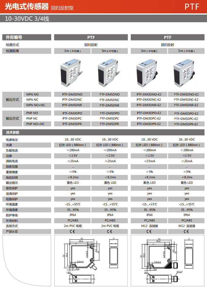 PTF-DM3DNO,PTF-DM3DNC,PTF-DM3DNR,PTF-DM3DPO,PTF-DM3DPC,PTF-DM3DPR,PTF-DM5DNO,PTF-DM5DNC,光電式傳感器