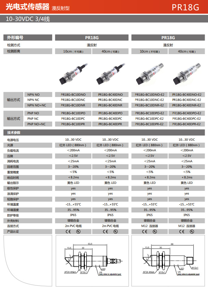 PR18G-BC10DNO,PR18G-BC10DNC,PR18G-BC10DNR,PR18G-BC10DPO,PR18G-BC10DPC,PR18G-BC10DPR,光電式傳感器