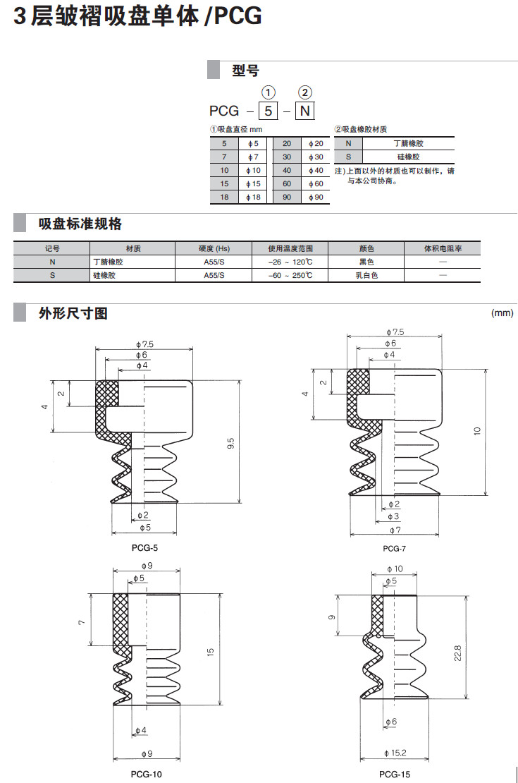 PCG-5,PCG-7,PCG-10,PCG-15,PCG-18,PCG-20,PCG-30,PCG-40,PCG-60,PCG-90,吸盤