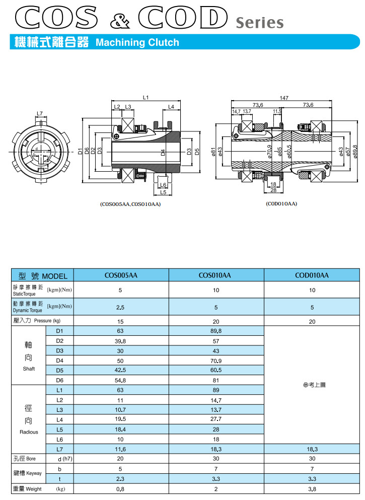COS005AA,COS010AA,COD010AA,機械式離合器