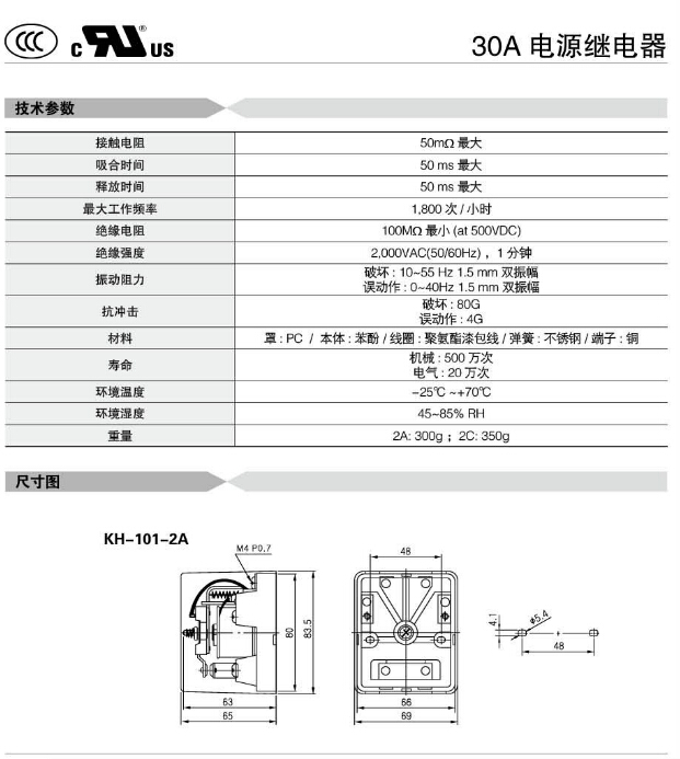 KH-101-2A,KH-101-2C,Koino 30A電源繼電器