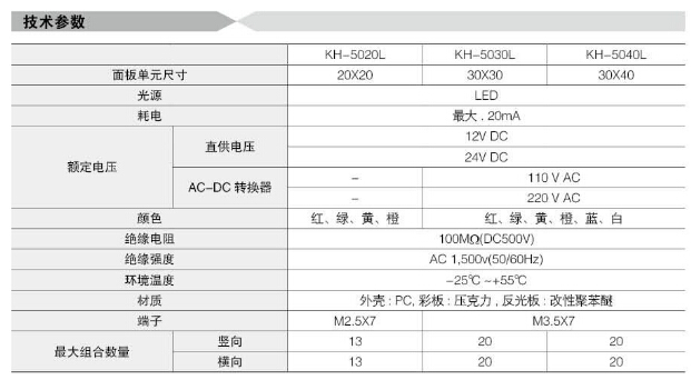 KH-5020L-12,KH-5030L-12,KH-5040L-12,KH-5020L-24,KH-5030L-24,KH-5040L-24,KH-5030L-24PCK,Koino LED集合信號 |