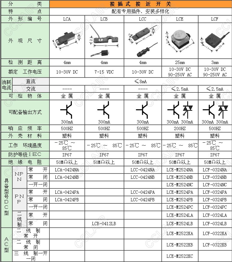 LCA-0424NA,LCC-0424NA,LCE-M2524NA,LCF-0324NA,LCA-0424NB,LCC-0424NB,LCE-M2524NB,接插式接近開關 |