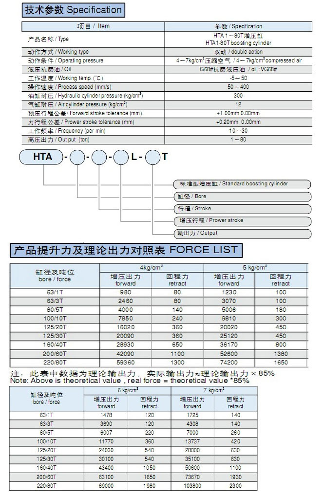HTA-63,HTA-80,HTA-100,HTA-125,HTA-160,HTA-200,HTA-220,標(biāo)準(zhǔn)型增壓缸