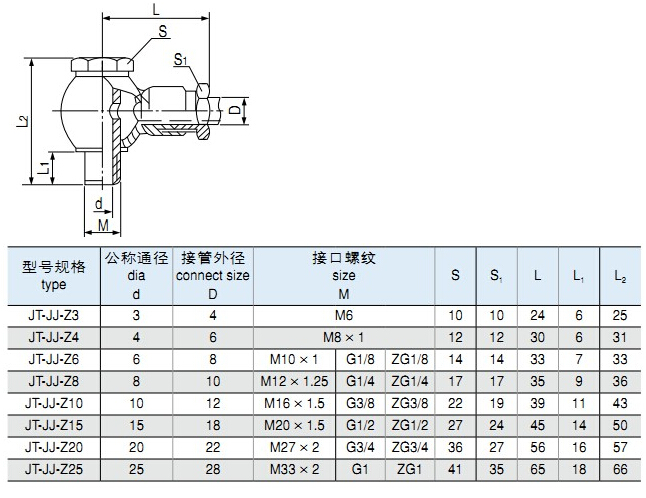 JTL-JJ-Z3,JT-JJ-Z4,JT-JJ-Z6,JT-JJ-Z8,JT-JJ-Z10,JT-JJ-Z15,JT-JJ-Z20,JT-JJ-Z25,卡套式直角鉸接終端管接頭