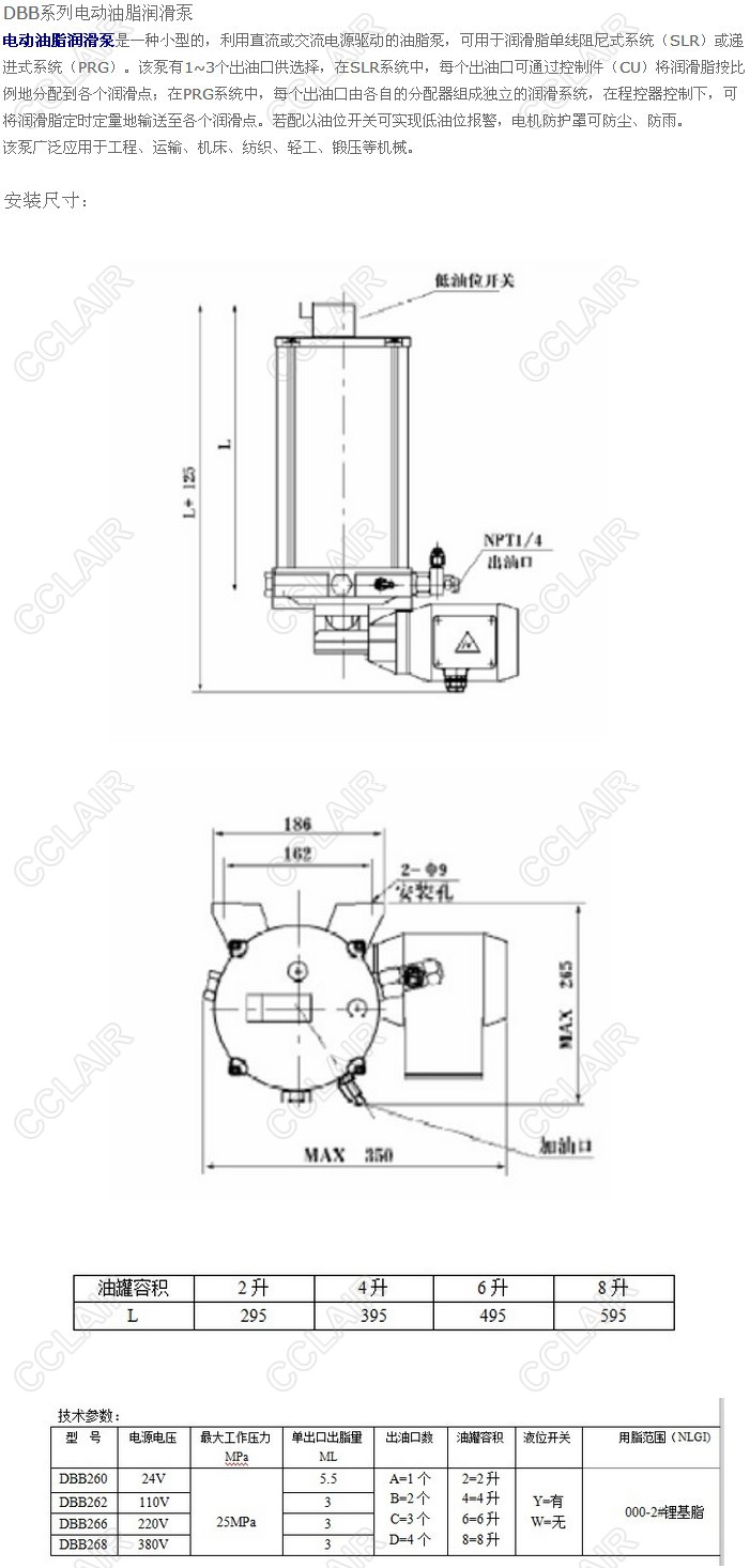 DBB260,DBB262,DBB266,DBB268,電動油脂潤滑泵