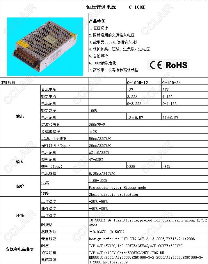 C-100M-12,C-100M-24,C-100M,恒壓普通電源
