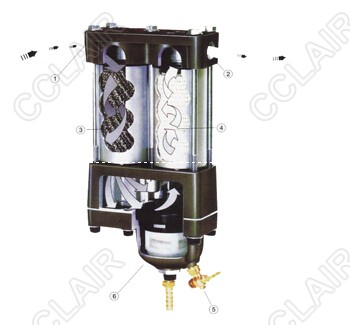 6、結(jié)構(gòu)緊湊,集過濾水、油、粉塵三種功能于一體,部件間連接緊密。