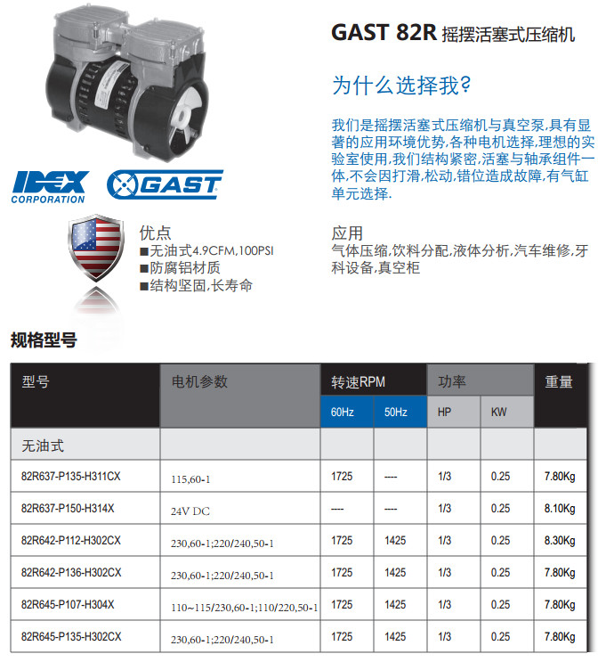 82R637-P135-H311CX,82R642-P112-H302CX,82R645-P107-H304X,搖擺活塞式壓縮機 |