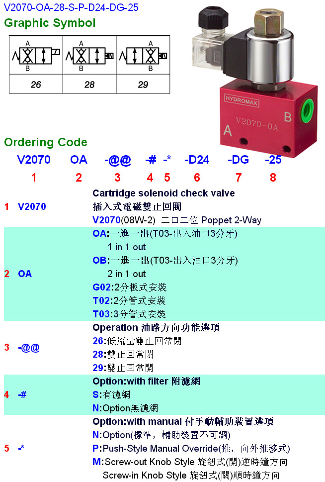 V2070-OA-28-S-P-D24-DG-25,V2070-OB,V2070-G02,V2070-T02,V2070-T03,HYDROMAX插入式電磁止回閥 |
