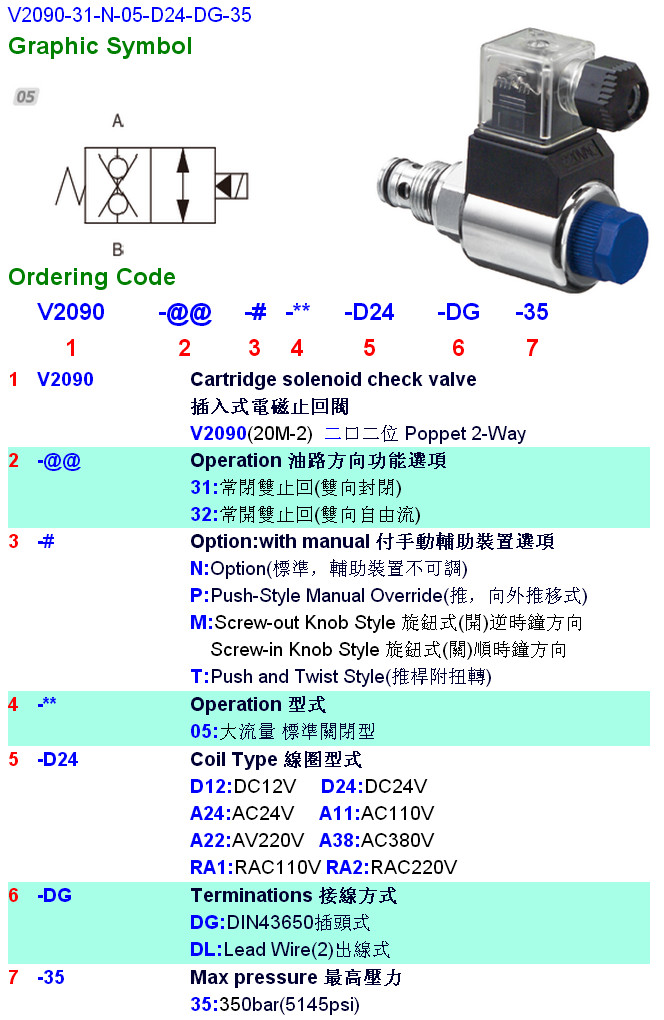 V2090-31-N-05-D24-DG-35,V2090-31-N,V2090-31-P,V2090-31-M,V2090-31-T,HYDROMAX插入式電磁止回閥