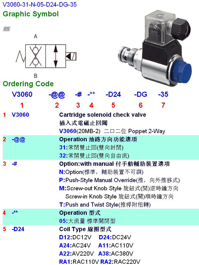 V3060-31-N-05-D24-DG-35,V3060-31-N,V3060-31-P,V3060-31-M,V3060-31-T,HYDROMAX插入式電磁止回閥