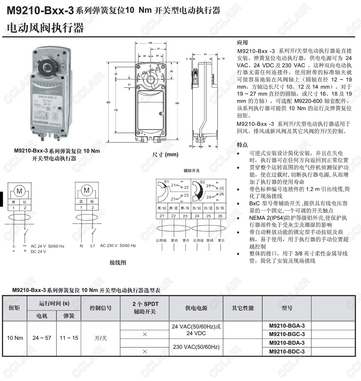 M9210-BGA-3,M9210-BGC-3,M9210-BDA-3,M9210-BDC-3,M9210-Bxx-3,電動(dòng)風(fēng)閥執(zhí)行器
