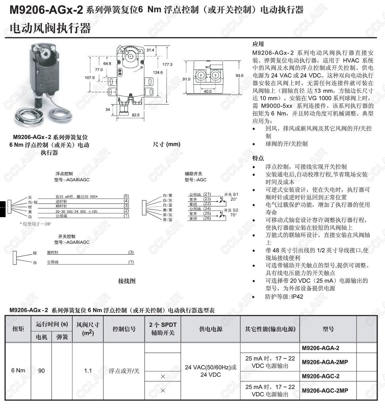 M9206-AGA-2,M9206-AGA-2MP,M9206-AGC-2,M9206-AGC-2MP,M9206-AGx-2,電動風閥執(zhí)行器 |