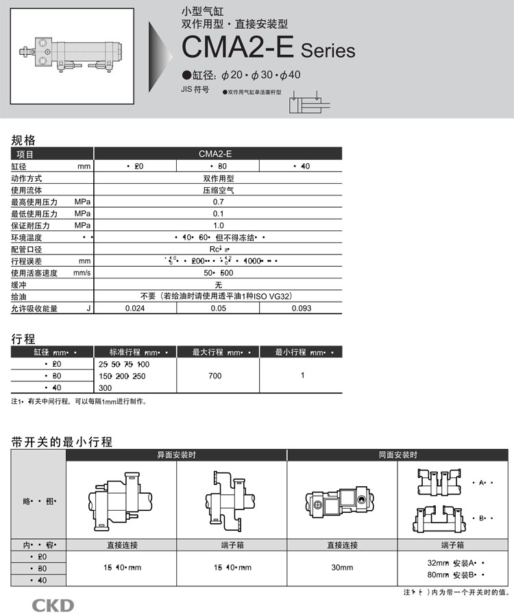 CMA2-E-LS-20-25,CMA2-E-FA-20-250,CMA2-E-FA-20-300,CMA2-E-LS-20-50,CMA2-E-LS-20-75,CKD小型氣缸 |