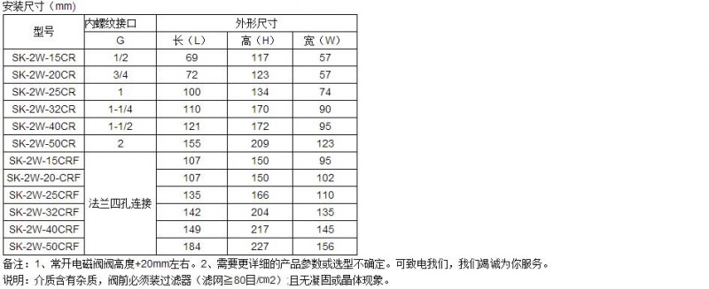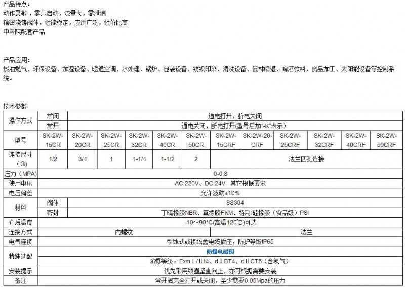 SK-2W-15CR,SK-2W-25CR,SK-2W-50CR,SK-2W-20CRF,SK-2W-32CRF,SK-2W-40CRF,不銹鋼膜片電磁閥