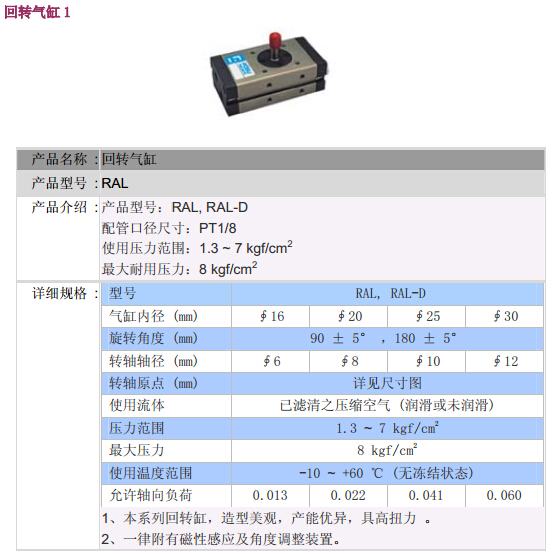 RAL-16,RAL-20,RAL-25,RAL-30,RAL-D-16,RAL-D-20,RAL-D-25,RAL-D-30,POSU回轉(zhuǎn)氣缸