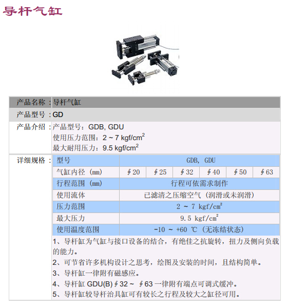 GDB-20,GDB-25,GDB-32,GDB-40,GDB-50,GDB-63,POSU導桿氣缸