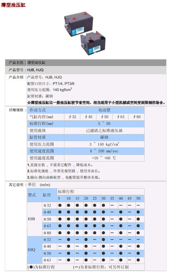 HJB-32*5,HJB-40*5,HJB-50*5,HJB-63*5,HJB-80*5,HJQ-32*10,HJQ-40*10,HJQ-50*10,HJQ-63*10,POSU薄型油壓缸 |