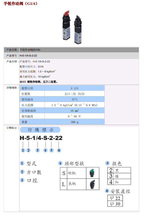 H-5-1/4-S-2-22,POSU手鈕作動(dòng)閥