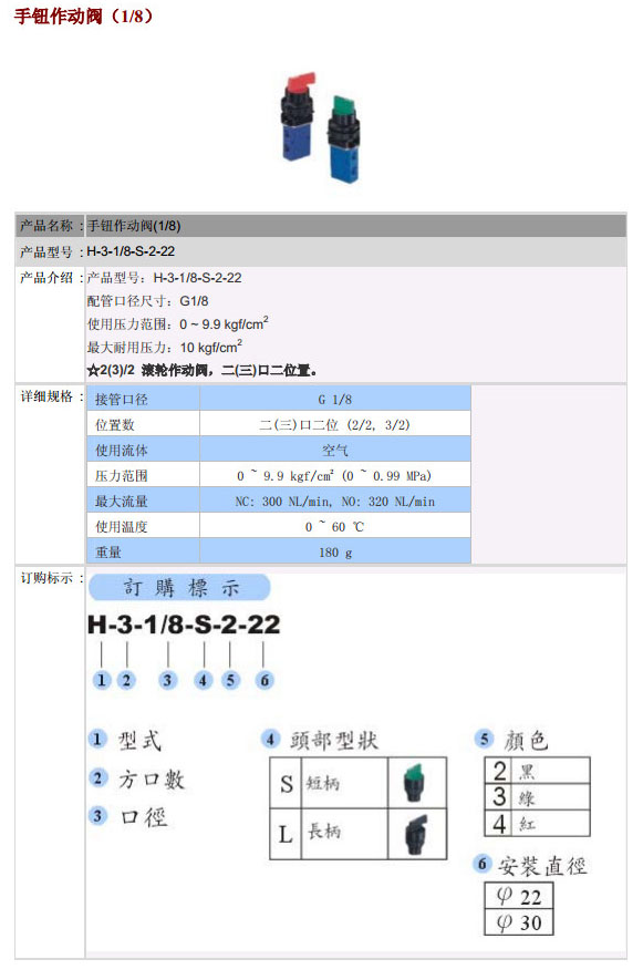 H-3-1/8-S-2-22,POSU手鈕作動閥