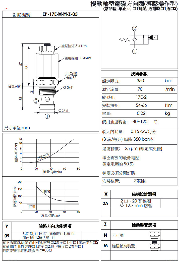 EP-17W-2A-09-N-05,EP-17W-2A-09-M-05,winner提動軸型電磁方向閥