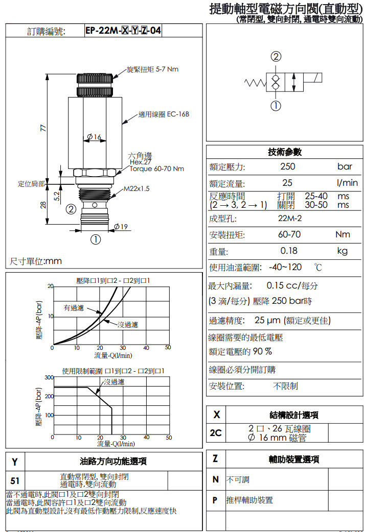 EP-22M-20C-51-N-04,EP-22M-20C-51-P-04,winner提動軸型電磁方向閥