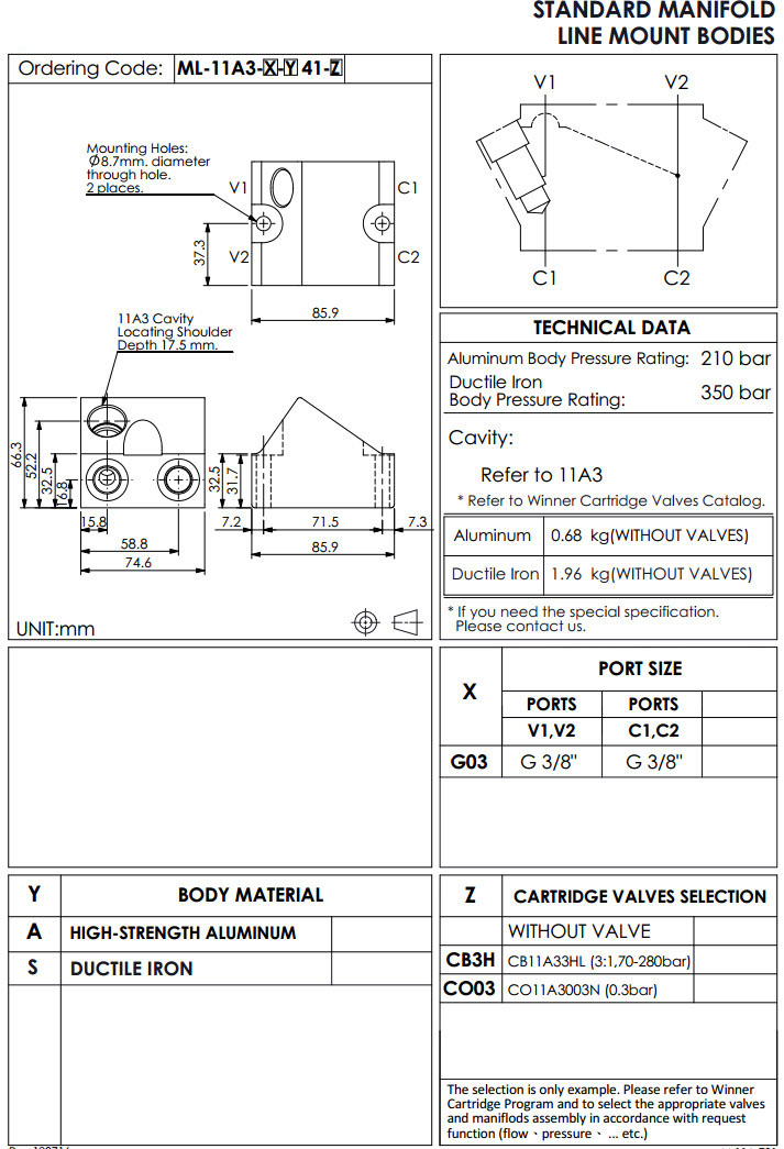 ML-11A3-G03-A41-CB3H,ML-11A3-G03-S41-CB3H,ML-11A3-G03-A41-CO03,ML-11A3-G03-S41-CO03,winner標準配管式油路板 |