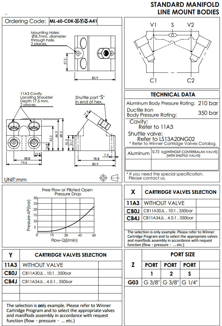 ML-60-CDK-11A3-11A3-G03-A41,ML-60-CDK-CB0J-CB0J-G03-A41,ML-60-CDK-CB4J-CB4J-G03-A41,winner標準配管式油路板 |