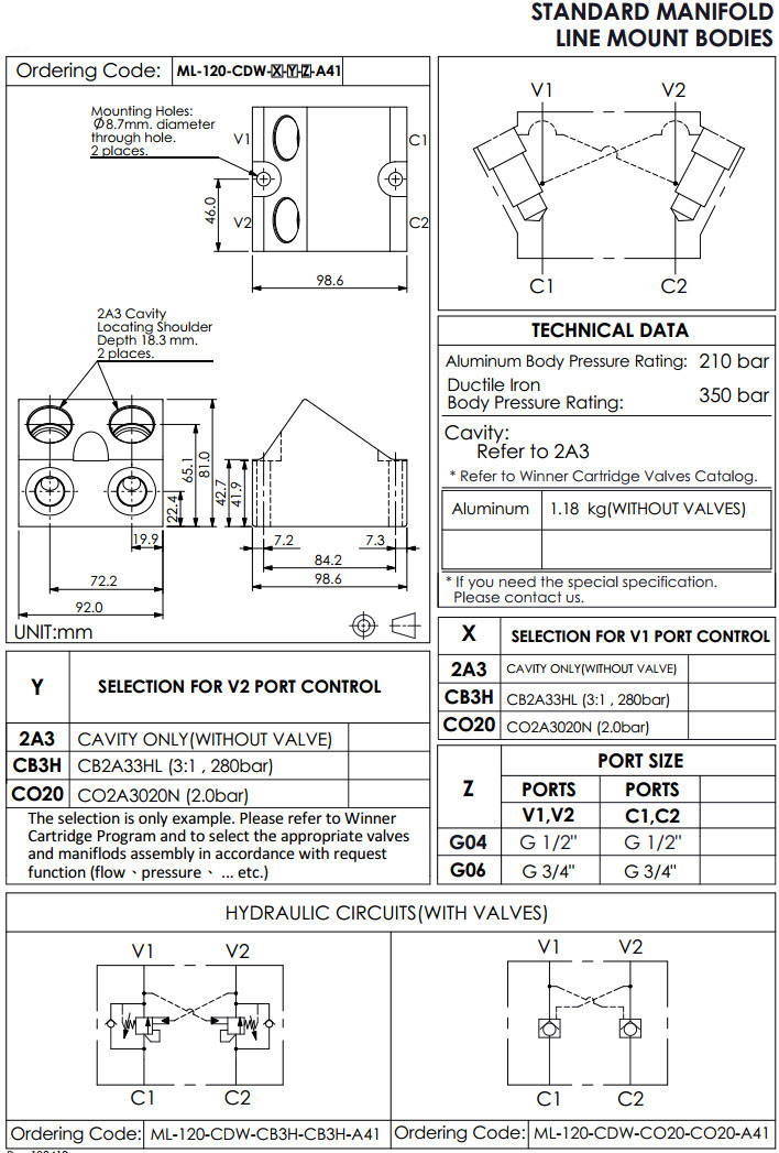 ML-120-CDW-2A3-2A3-G04-A41,ML-120-CDW-CB3H-CB3H-G04-A41,ML-120-CDW-CO20-CO20-G04-A41,winner標準配管式油路板 |