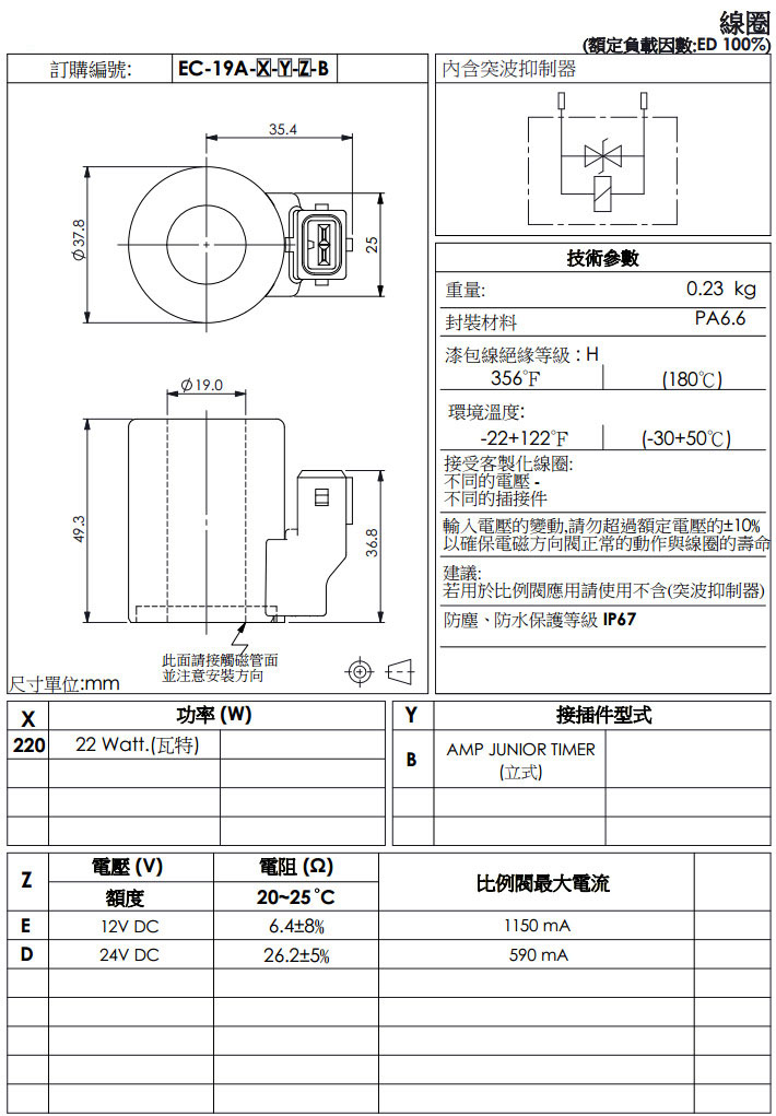 EC-19A-220-B-E-B,EC-19A-220-B-D-B,winner線圈