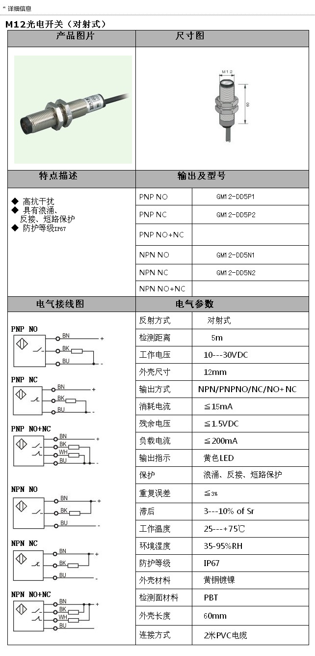 GM12-DD5P1,GM12-DD5P2,GM12-DD5N1,GM12-DD5N2,M12光電(對(duì)射)