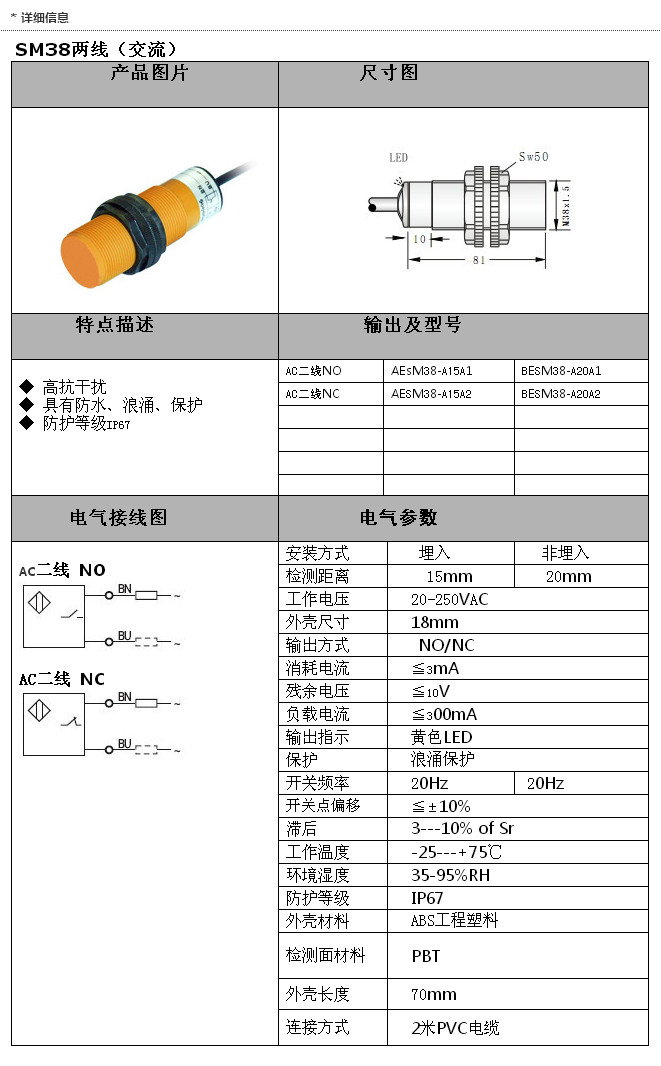 AESM38-A15A1,BESM38-A20A1,AESM38-A15A2,BESM38-A20A2,SM38交流兩線