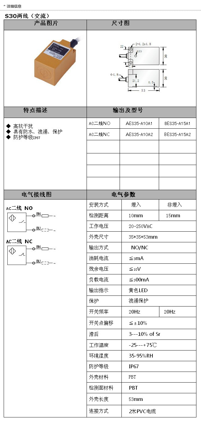AES35-A10A1,BES35-A15A1,AES35-A10A2,BES35-A15A2,S30交流兩線