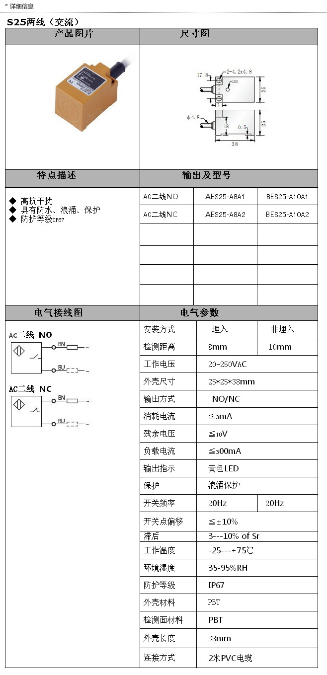 AES25-A8A1,BES25-A10A1,AES25-A8A2,BES25-A10A2,S25交流兩線