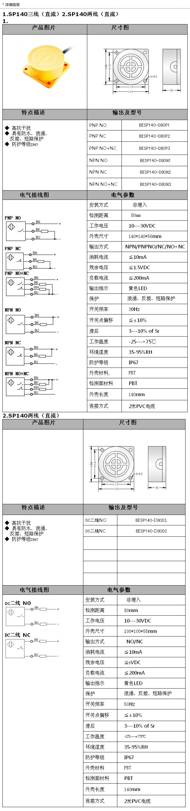 BESP140-D80P1,BESP140-D80P2,BESP140-D80N2,BESP140-D80N3,SP140直流三二線
