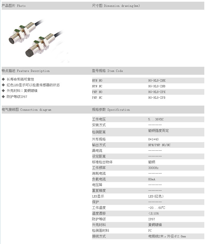 霍爾傳感器 HG-HL8-ZNK,HG-HL8-ZNB,HG-HL8-ZPK,HG-HL8-ZPB