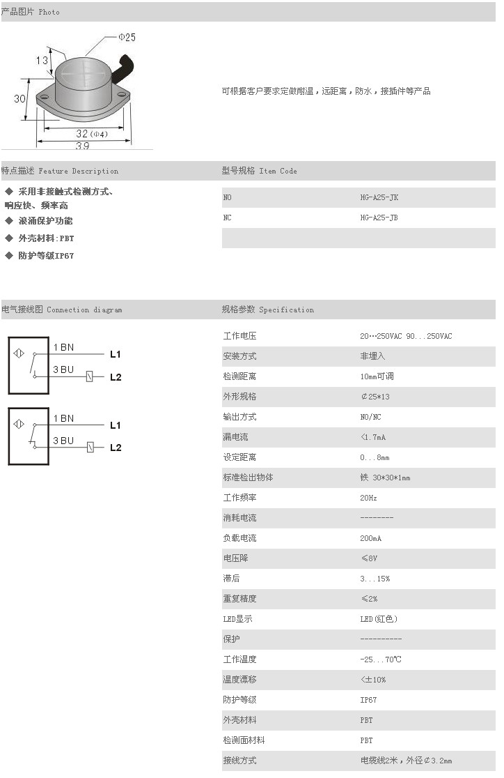 餅型接近傳感器 HG-A25-JK,HG-A25-JB,