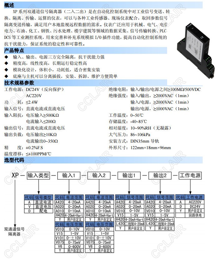 XP-A-2A420-2A420-D,XP-D-2A420-2A420-D,XP-D-2A420-2L420,XP,雙通道信號(hào)隔離器