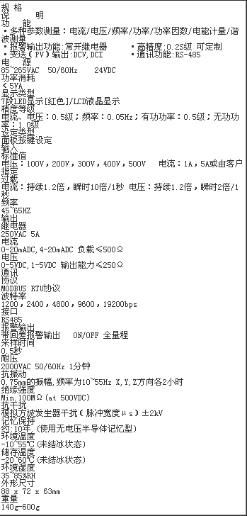 SWP-EM系列三相電力儀表采用先進的交流采樣技術(shù),能分別測量電網(wǎng)中的電流,電壓,頻率,功率,功率因數(shù)等電參數(shù),可通過面板薄膜開關切換顯示內(nèi)容及設置內(nèi)部參數(shù)。可用RS-485通訊接口與微機實現(xiàn)通訊,極大地方便了用電自動化管理;也可將電量信號轉(zhuǎn)換成標準的直流模擬信號輸出;帶2路繼電器報警輸出。采用標準導軌式安裝,節(jié)約空間。