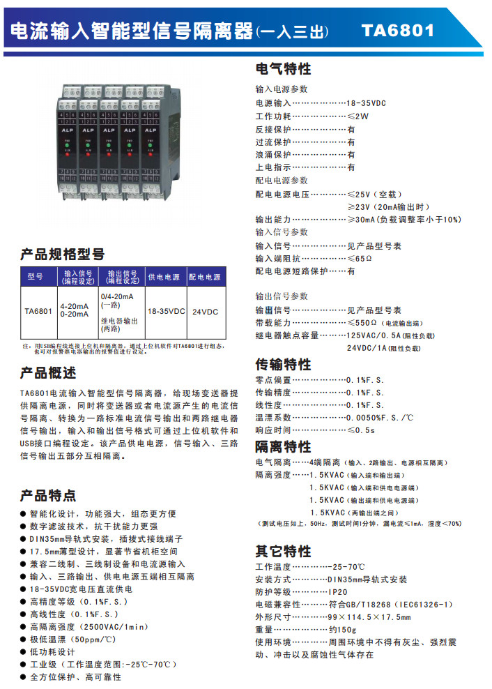 TA6801,電流輸入智能型信號隔離器(一入三出)