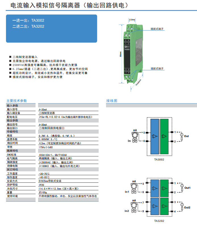 TA3002,TA3202,電流輸入模擬信號隔離器