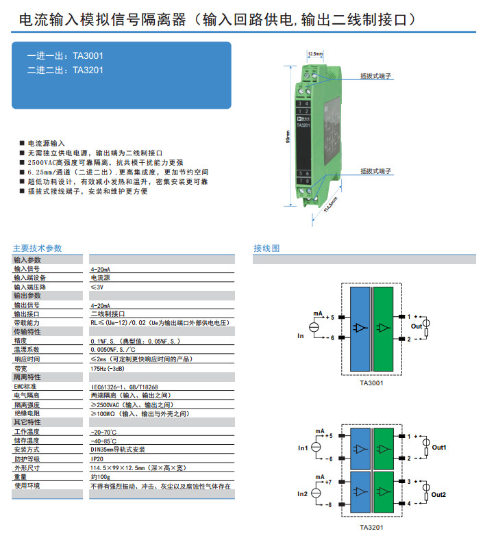 TA3001,TA3201,電流輸入模擬信號(hào)隔離器