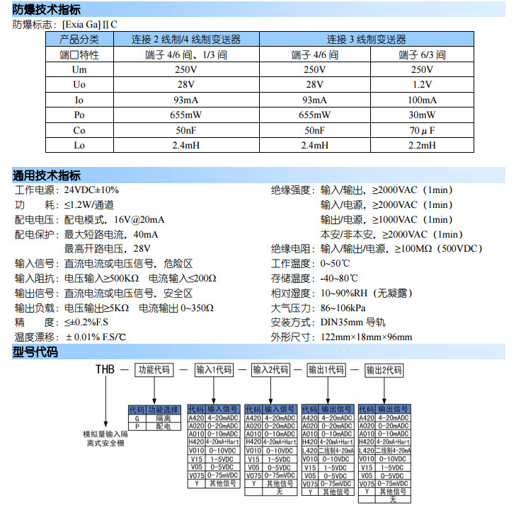 THB-G-A420-2A420,THB-P-A420-A420,THB-G-V010-2V010,THB模擬量輸入隔離式安全柵