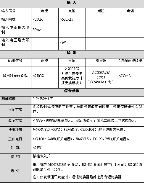 支持RS485、RS232串行接口,采用標(biāo)準(zhǔn)MODBUS RTU通訊協(xié)議 |